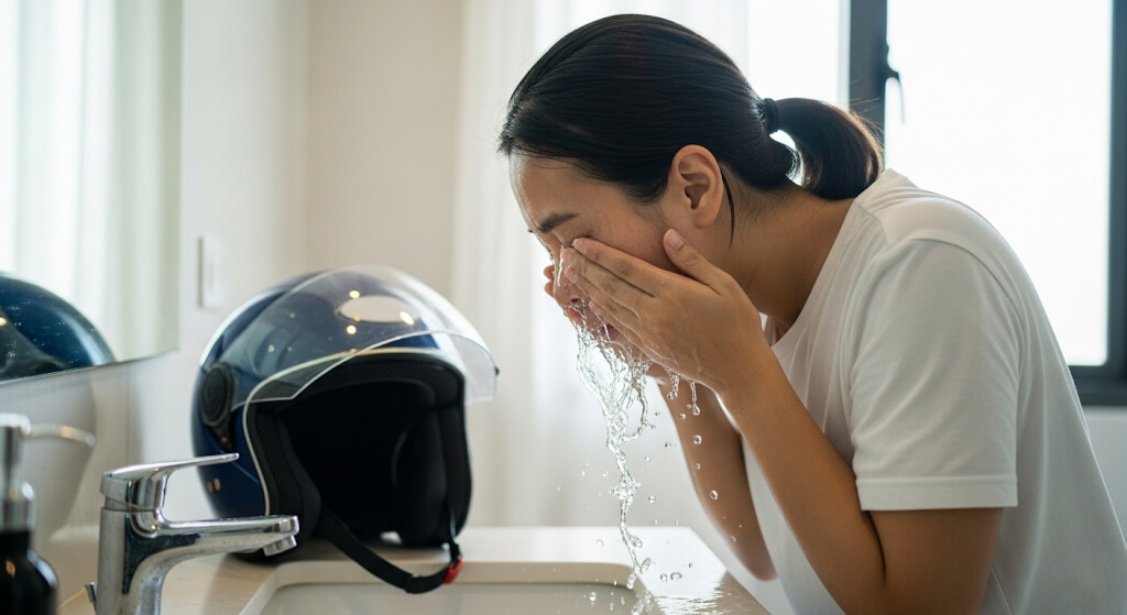 ล้างหน้าทันทีหลังขับขี่ เพื่อกำจัดฝุ่นและเหงื่อ เลือกสูตรที่อ่อนโยนแต่ช่วยควบคุมความมันได้ดี