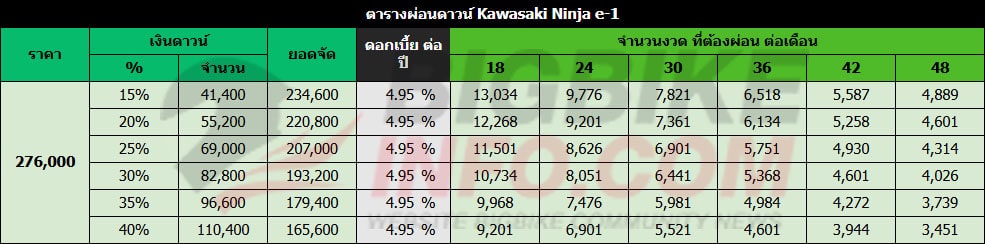 ตารางผ่อนดาวน์ คาวาซากิ นินจา อี-วัน