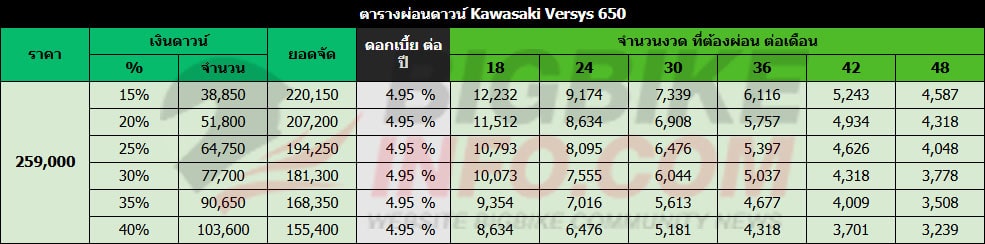 ตารางผ่อนดาวน์ Kawasaki Versys650 ABS