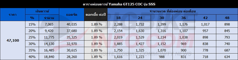 | Yamaha GT125 COC รุ่น SSS | 47,100 |